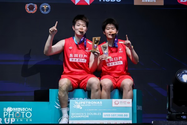 國羽女雙頭號種子劉圣書/譚寧在本站賽事中表現優秀。半決賽面對韓國組合鄭那銀/李妍雨,“圣壇”組合直落兩局取勝,順利闖入決賽。決賽中,她們再度迎戰韓國強檔白荷娜/李昭希——這也是兩對組合自去年年終總決賽半決賽后的又一次關鍵對決。首局較量,劉圣書/譚寧開局稍顯慢熱,一度比分落后,但她們迅速穩住陣腳,憑借耐心周旋將比分追平。進入局歇時,對手僅以11比10領先一分。下半局,劉圣書/譚寧通過連貫的進攻與嚴密的控制拉開分差,最終以21比18先拔頭籌。第二局,中國組合繼續穩扎穩打,全程掌控節奏,最終21比12戰勝對手,奪得新賽季首站頂級賽冠軍。這也是她們繼2024年后,再次在馬來西亞公開賽女雙項目上奪冠。